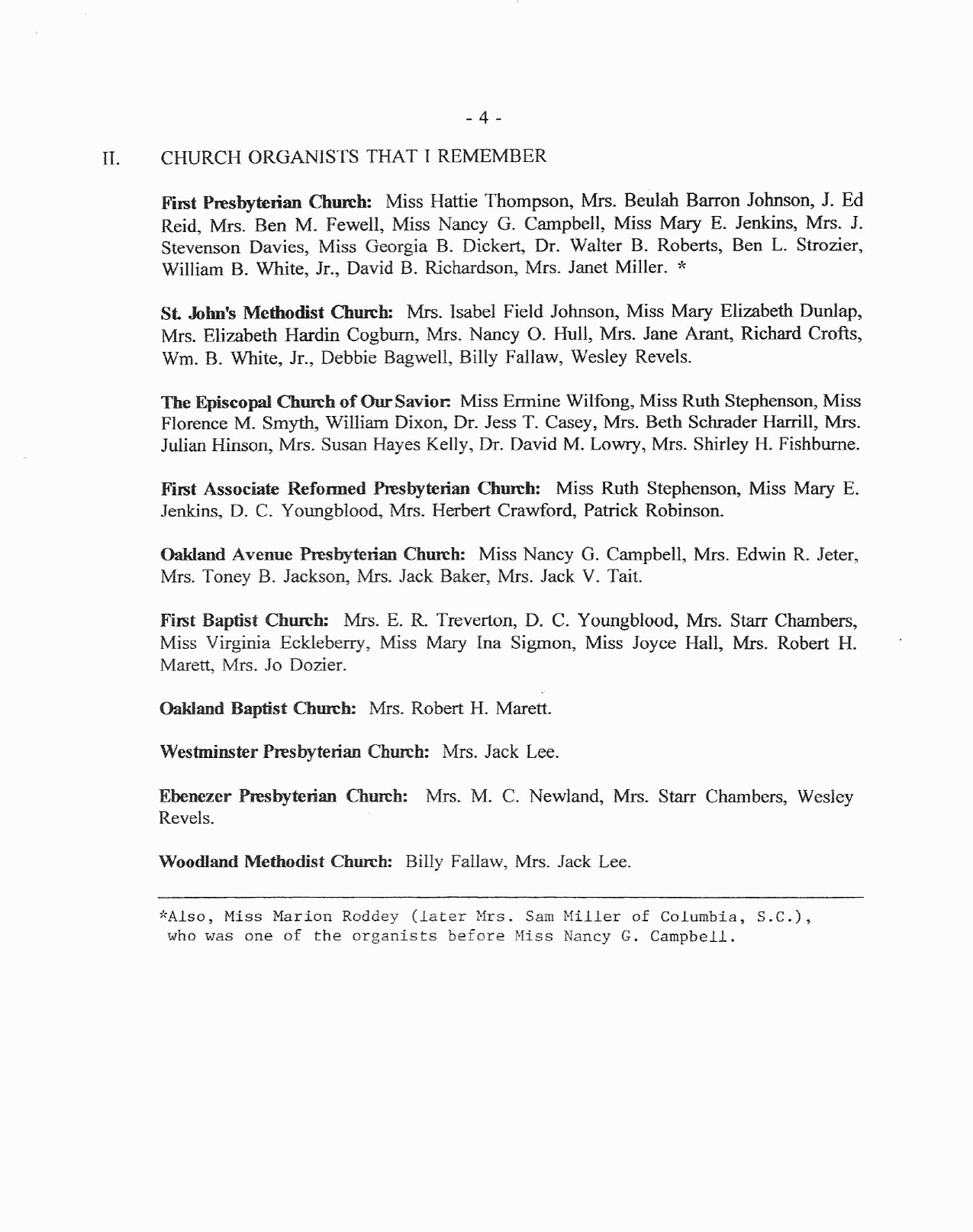 by Billy White, well-known substitute organist and AGO member for many years. This document was made possible by Morris Spearman, organ