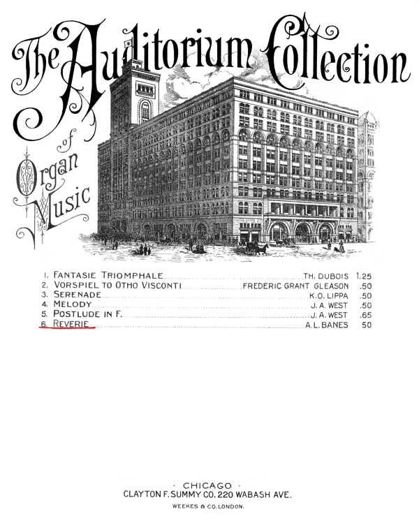 called “The Auditorium Collection of Organ Music” which celebrated the Roosevelt organ in the Chicago Auditorium.