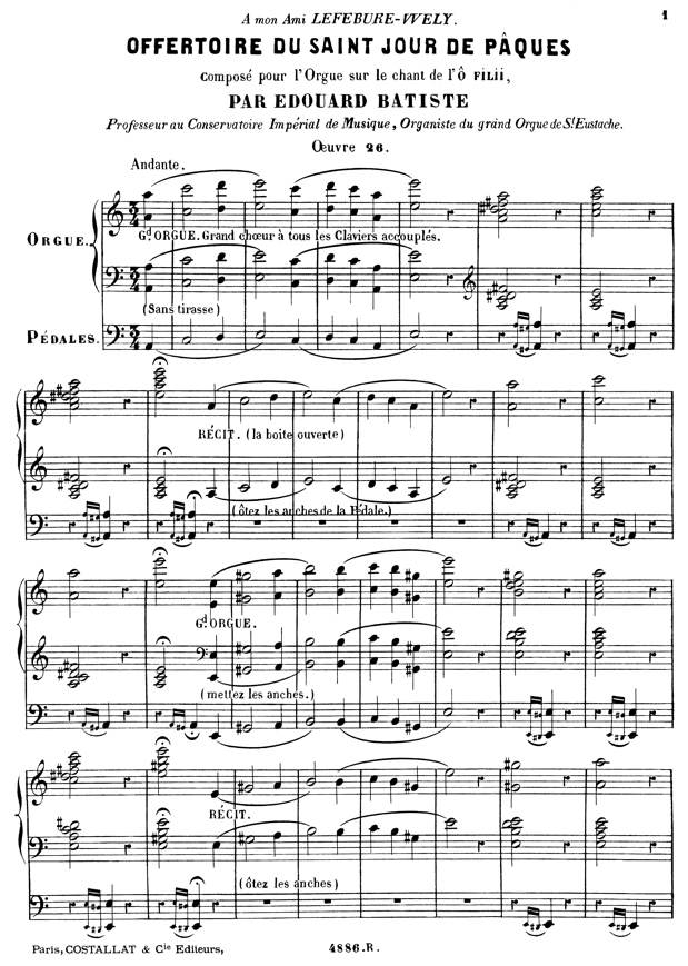 by Edouard Batiste; Professor at the Imperial Conservatory of Music, Organist of the Great Organ of St Eustache; Opus 26.