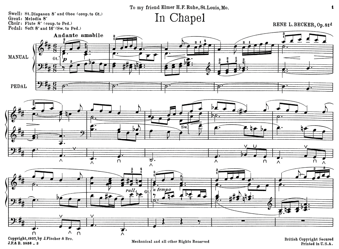 by René Becker, reprint of 1927 J Fischer Bro edition