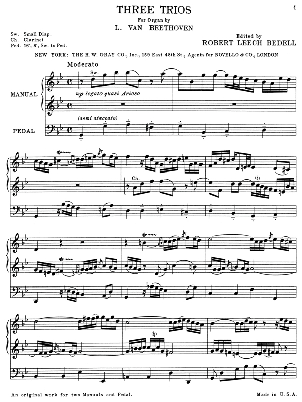 comprise “an original work for two Manuals and Pedal.” Beethoven was enamored of Bach and this shows in these fine organ