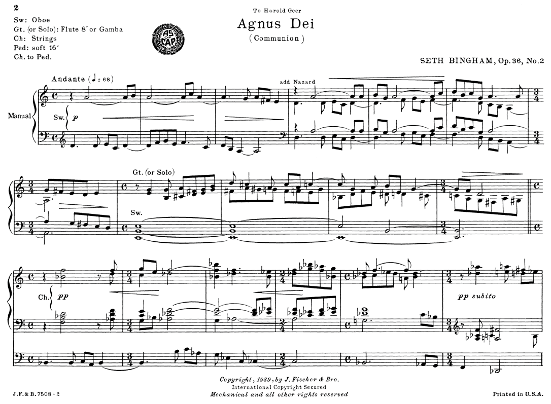 by Seth Bingham, reprint from J Fischer & Bro, 1939