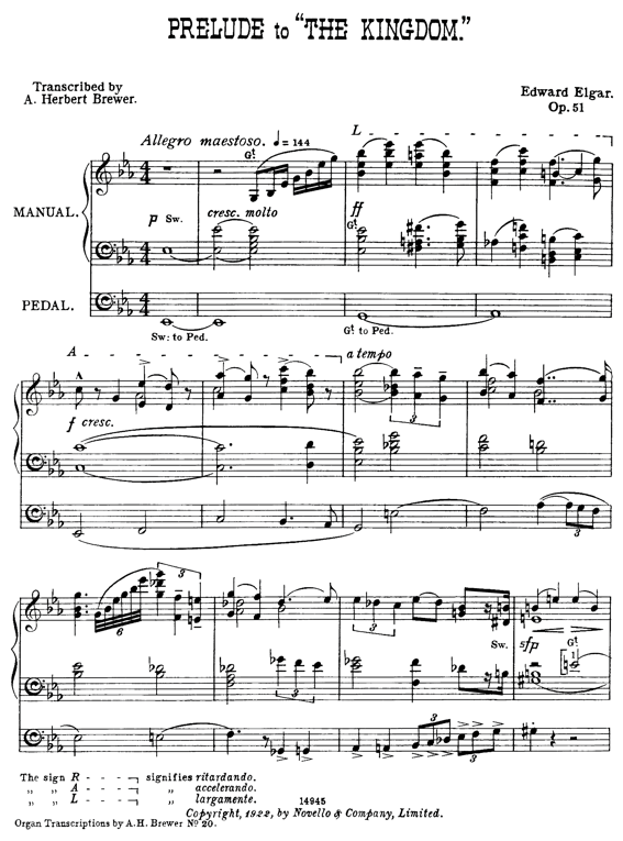 was the last of Brewer’s published transcriptioins and is from Elgar’s oratorio, his Opus 51, first performed in 1906.