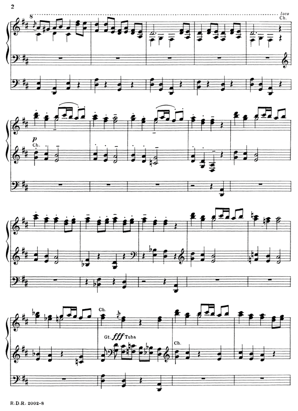 conventional items. Clever touch: The perfect fifths played on soft 16' and 32' stops in the pedal part to simulate a bass drum.”