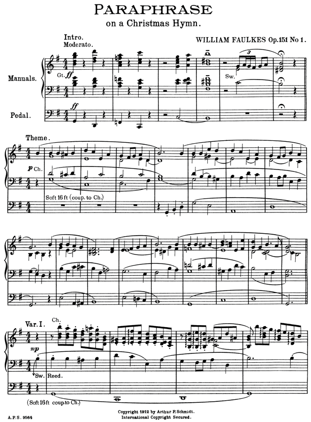 a noted critic of the highest standards, offered his approval of Faulkes’s music. This short set of four variations and finale is sure