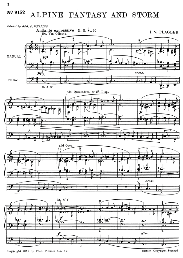 York. This composed storm piece includes calling between Alpine peaks with echoes, a stirring storm, and the calm ending with the “Vesper Hymn.”