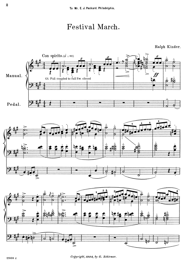 numerous recitals, and wrote many melodic organ pieces. Kinder first played “Festival