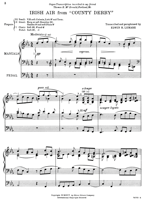 known organist in the art of transcription. Though universally known as “Danny Boy,” this tune was first published