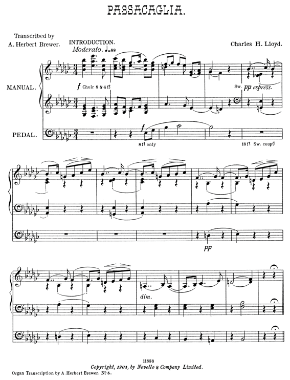 books of Ezekiel and Habakkuk. It was first performed for the Three Choirs Festival at Hereford in 1891. The Passacaglia is a transcription of the