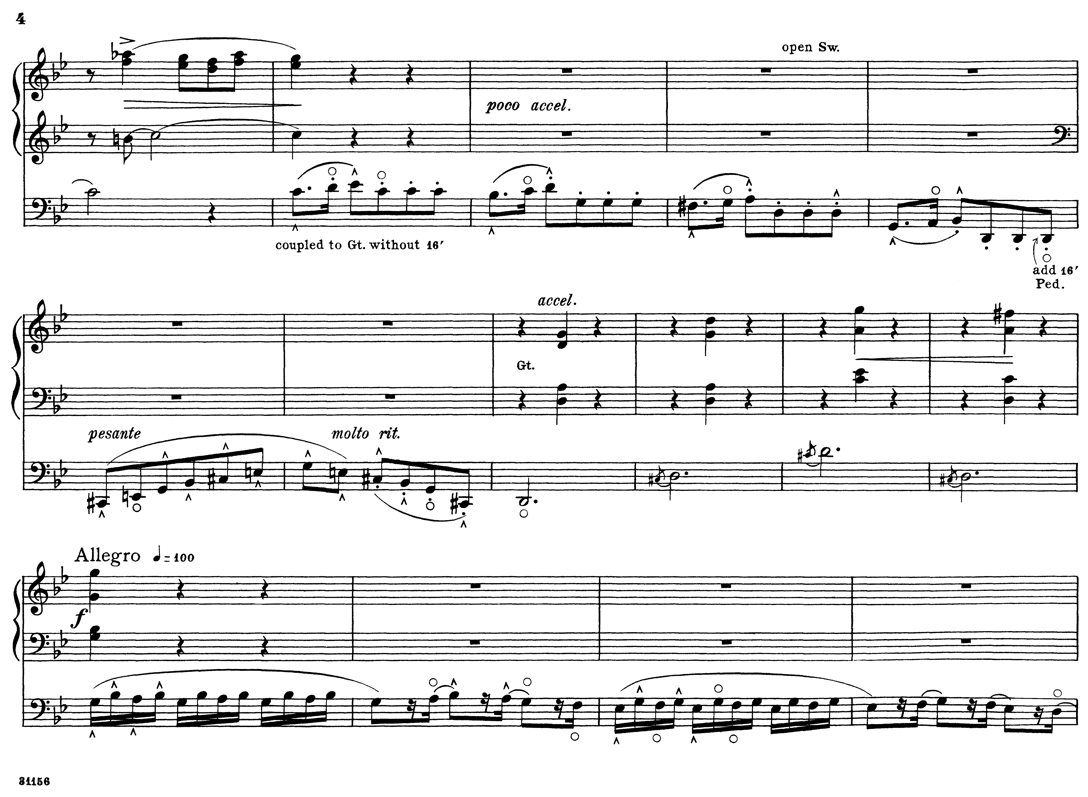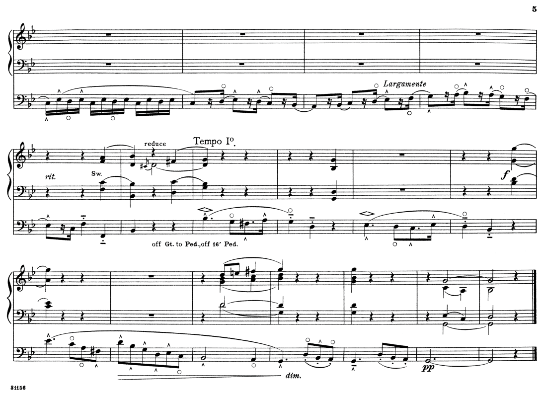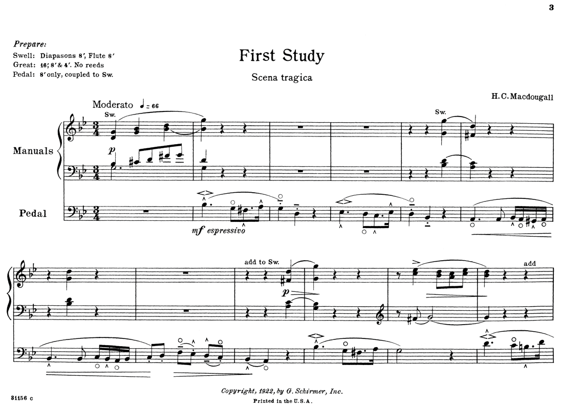 | In the present studies the parts given to the feet are either well-defined melodies or are melodically interesting. They will therefore stimulate the player’s interest in pedal playing and, through the assignment to the feet of those climacteric and dramatic passages usually (and quite naturally) given to the hands, give him a grip of the pedals not otherwise obtainable. |