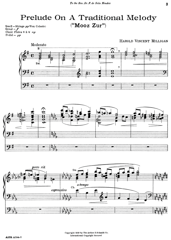 Harold Vincent Milligan (1888-1951) was born in Oregon and began playing for churches at age 12. He attended the Guilmant Organ School and is known today as the organist of the Riverside Church in New York City from 1930 until 1944. Moderately easy.