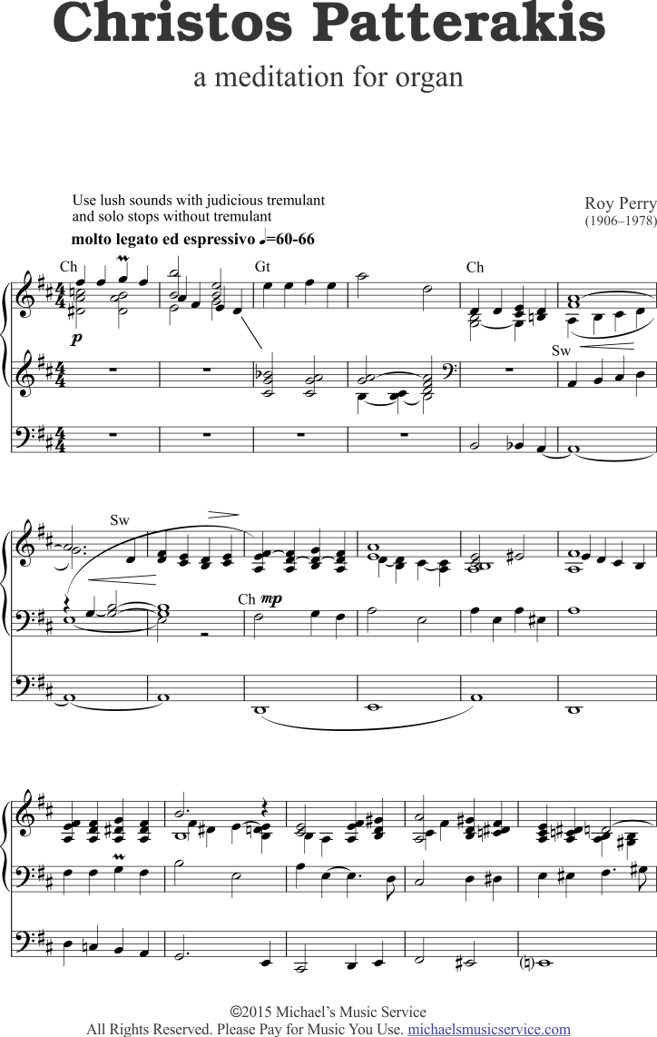 This is the first printing of this legendary piece by Roy Perry, the great organ designer and tonal finisher for G Donald Harrison