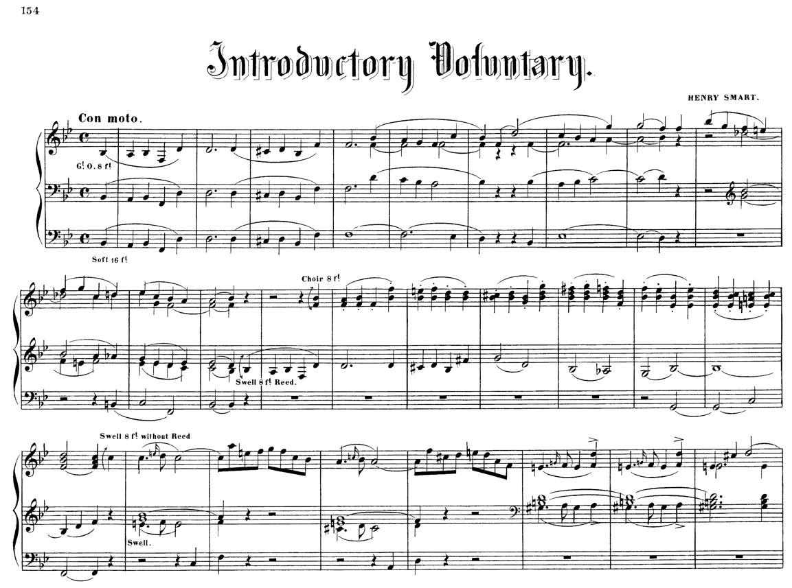 Lancashire. There are actually three pieces in this publication: Prelude in E Flat, Introductory Voluntary in B Flat, and Andante Grazioso. (See below.) These could be used as service music that will lend dignity to any service. Moderate.