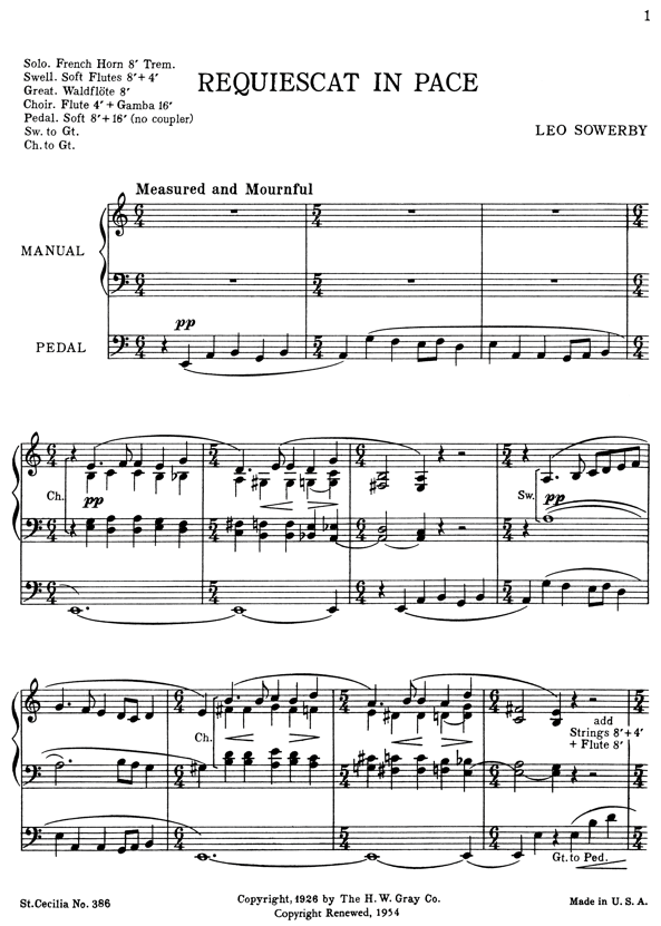 by Leo Sowerby, reprint from H W Gray, 1926