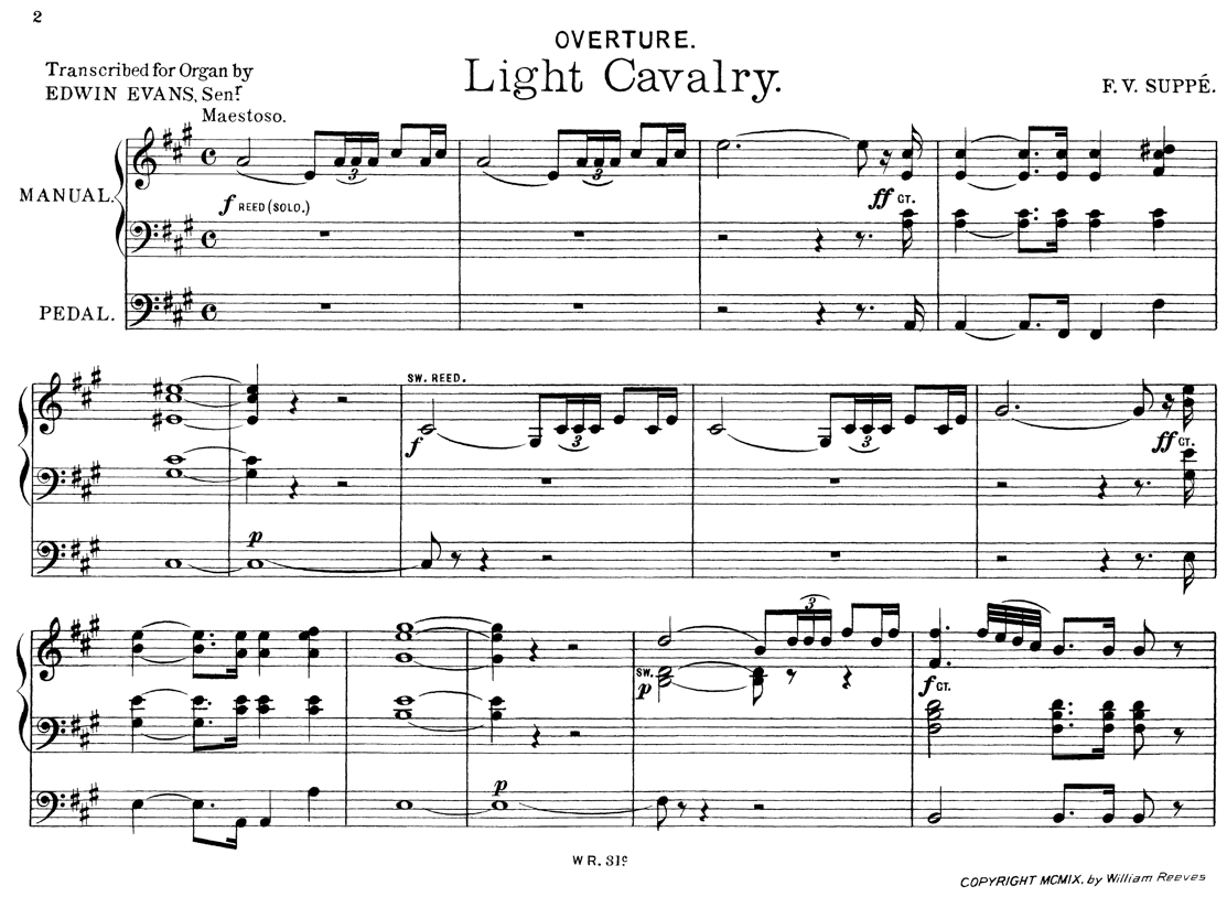 refers to minimally-armed and armored troops mounted on horses. Evans’s transcription is of Suppé’s entire overture.