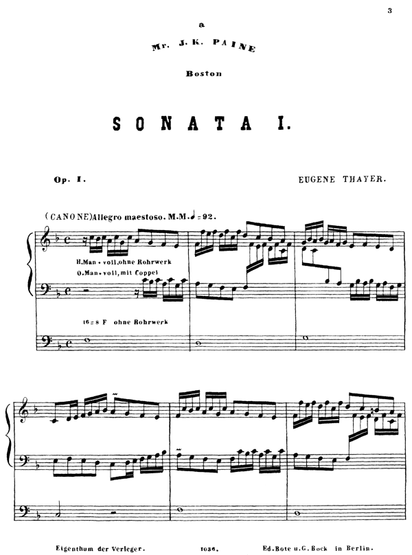 Sonata I for organ was published in the 1860s