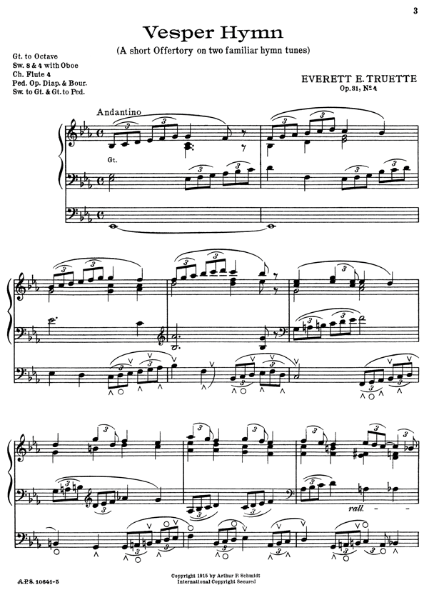 “Vesper Hymn” is subtitled “A short Offertory on two familiar hymn tunes,” and in 1915 this was true. In 2016, only the second tune,
