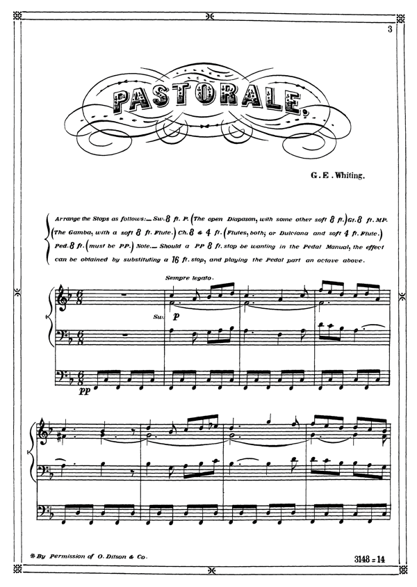 differentiate it from his other Pastorales. At the bottom of the first page of music, you will find “By Permission of