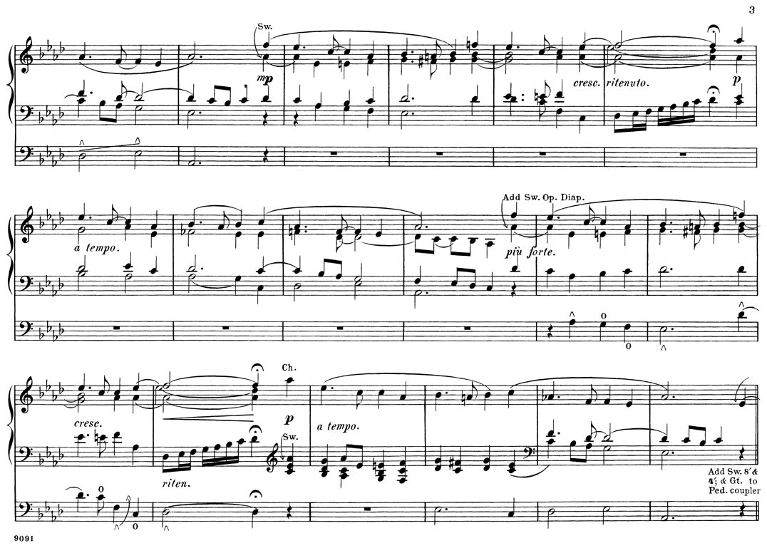 founder of the American Guild of Organists and played solos at the American Centennial Philadelphia Exposition in 1876, the Pan-American Exposition in 1900, and the St Louis Exposition in 1904. His paraphrase on “Auld Lang Syne” is artistic and restrained in comparison to those by Liszt, will use every colorful stop on your organ, and ends quietly. Moderate.