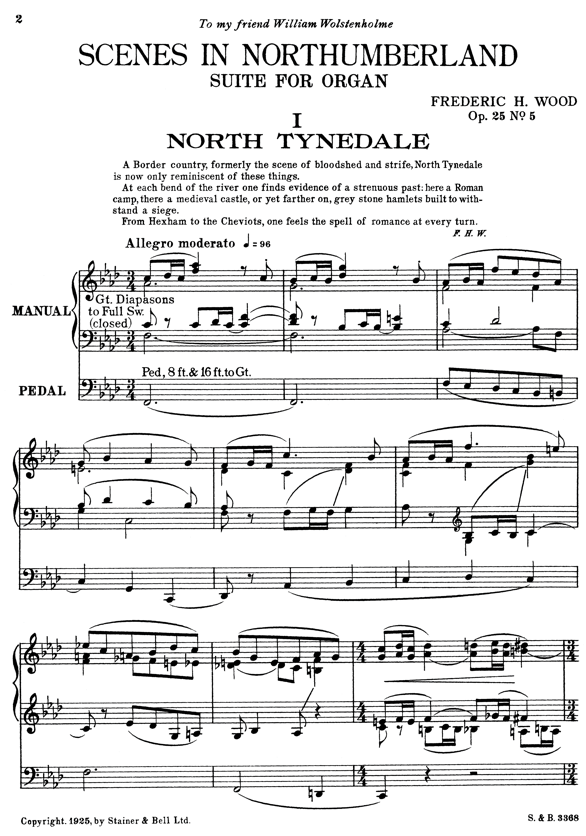 is his second of these organ suites and is dedicated to William Wolstenholme (1865–1931), the blind English composer